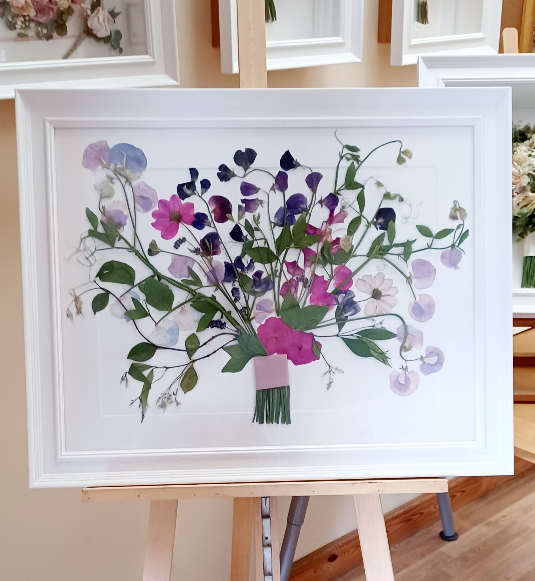 Bespoke preservation of bridal bouquets, transformed into timeless framed displays or pressed artwork.